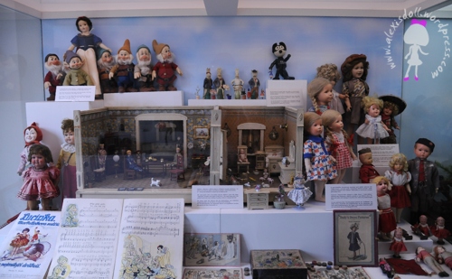Na pierwszym piętrze możemy obejrzeć obszerny zbiór zabawek z dawnych lat. Są to m.in.: lalki, akcesoria z nimi związane, stare ozdoby świąteczne, samochodziki, zabawki drewniane, kolejki, pierwsze zabawki mechaniczne, karuzele i wiele wiele innych. Oto kilka fotek: